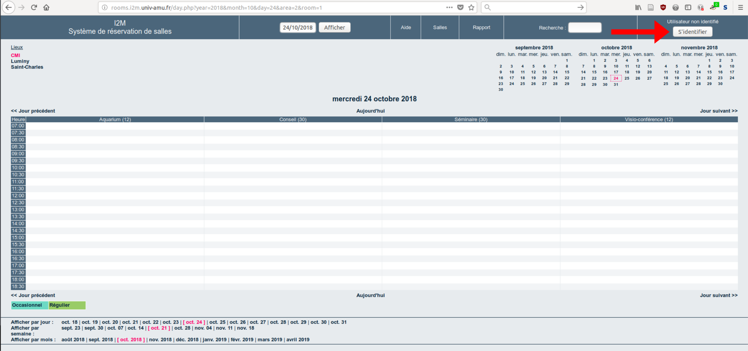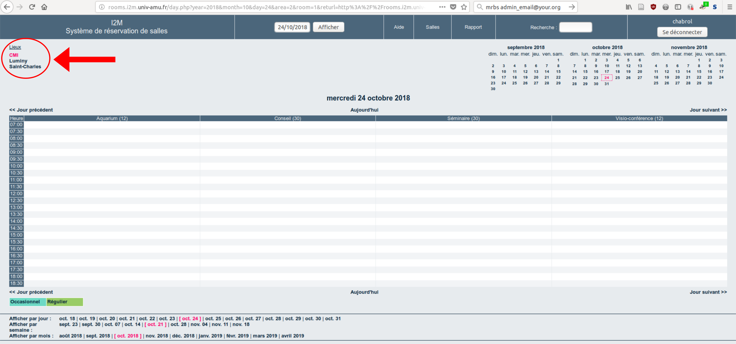 Pour réserver une salle sur le site du CMI, il faut se rendre à l'adresse : http://rooms.i2m.univ-amu.fr